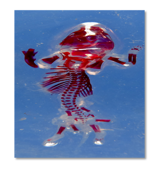The crystal clear bone and cartilage visible specimen were then placed in same 1% KOH and then 6 to 8 drops of 1% Alizarin stain was added to color it deep purplish red. The solution was gently shaked a few times per hour. Then the same procedure was continued for another 2-3days in order to give deep purplish red color to bone and cartilages. For removal of any over staining and smoothening of the samples, the same are then passed through 40%, 80% (40ml glycerol+60ml distilled water, 80ml glycerol+20ml distilled water) and 1 to 2 crystal thymol added for long term preservation finally maintained in 100% glycerol, served for photograph & powerful hand lens observation.