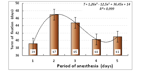It was found that in patients of group 1, the duration of pain after a limb injury affects the duration of treatment. (Figure 1) The duration of the period of fixation of the bone was the least in short-term pain syndrome and also for pain that needed to be stopped using pharmaceuticals during the first 4-5 days. The reduction of the terms of fusion with a relatively long pain syndrome may be a consequence of a more complete mobilization of protective and adaptive reserves of the body of children during this period.