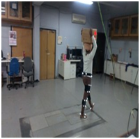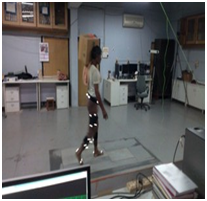 An array of six high speed cameras (type: ‘Oqus’) by the company ‘Qualisys’ were used to film each worker walking along a 75meter walk way having two Kistler, Switzerland force plates were used. Each worker first walked along the walkway at his self-selected speed without any load to establish a baseline and then, in random order, walked along the walkway with a 30kg load on the head, across one shoulder and on hand (frontal plane). Each worker followed the same protocol for the four testing conditions. The workers were allowed to walk on both the force plate-1 and force plate-2 and were stepped by left foot and right foot respectively. They were asked to walk for one hour (sixty minutes) during which five trials were recorded by the Oqus camera infrared digital cameras. The best three trials were considered for analysis (Figure 1).