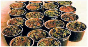 The propagules are raised in two ways by developing nursery or by sowing seeds in field. In the month of August and September the seeds are planted in the nursery. The seeds within twenty to thirty days germinated. Seedlings are transplanted to the field when they reach a height of 20 to 30cm. Cold stratification is required for three months for stored seeds which germinate in the month of February and March. Ten to twelve tones of manure are used for per hectare of the soil as a fertilizing component before the transplantation. Using cultivator the land should be ploughed two to three times. The plant can be grown as single crop or mixed crop with herbaceous species as well. Regular irrigation is required for the establishment stage. The plant is normally free from any physiological disorders (Figure 6).