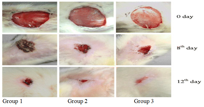 Photographs of animals on 0, 8th and 12th days post wounding of every group were taken.