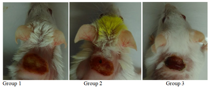 The histopathology of the wound curing slide represent that on day zero the scars and injury of tissue for all the three groups are approximately same (Figure 3).