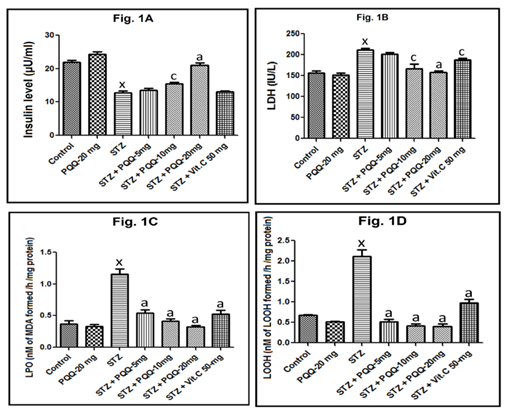 Keywords: diabetes mellitus, pyrroloquinoline quinine, vitamin–C, heart, lactate dehydrogenase, insulin, antioxidative agents