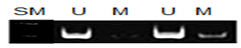 WRL-68 cells were treated with 1000μM of TiO2 for 24h, after which MSP was performed using genomic DNA isolated from these cells. Genomic DNA was isolated after serum-starvation from WRL-68 human hepatic cell lines. PCR was performed with primers specifically designed to amplify the DNA sequence of the catalase promoter CpG island II; SM, size marker; U, unmethylated (control) DNA; M, methylated DNA.