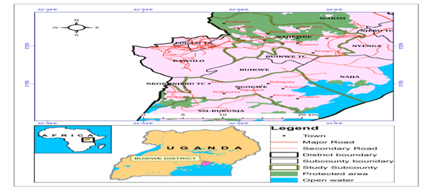 Njeru sub-county is located within Buikwe District and it covers an area of 144 sq. km. It is 45 miles East of Kampla, the capital city of Uganda (Figure 1). It also lies North of the equator at latitude 00 28’N and longitude 320 12’E and altitude of 3845 ft (1172 m) above sea level.