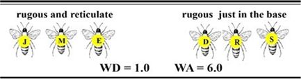 The species Plebeia juliani, Plebeia meridionalis, Plebeia droryana, Plebeia emerina, Plebeia remota and Plebeia saiqui are also identified by the letters J, M, D, E, R and S in the figures that illustrate the presentation of the methodology. We also modified the scale of weights, which initially ranged from zero to 5, to a scale from 1 to 6. This modification consisted of increasing a unit on the original scale making it more understandable in the interpretation of the relation ‘contribution of character/value of weighting. The use of weights to hierarchize the contributions of taxonomic characters is an old discussion that was potentiated with the emergence of Numerical Taxonomy in the 1950s, due to the lack of a rational and objective criterion of weighting. Michener et al.4 advocated the use of equal weights for all characters as an alternative to work around the problem. Other solutions were presented by Burtt et al.5 Farris et al.6 Goodman et al.7 Sneath et al.8 recognized that the controversies over the use of weighting in Numerical Taxonomy were responsible for the difficulties that slowed its progress. The importance of a taxonomic character depends on the objectives of the research and its behavior, discriminating or aggregating the members of the studied group. If the study aims to individualize species, the characters capable of discriminating are particularly important. However, if the study aims to structure taxons at higher levels, formed by the aggregation of similar individuals from lower taxons, aggregating characters play a relevant role in this task. This importance can be assessed by calculating the character weights in the formations of the taxons and in the identifications of the species. Maia et al.1 used discrete and continuous variables in the calculation of similarity coefficients using analysis of variance, without, however, creating a weighting criterion.