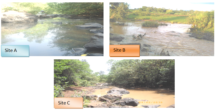 Site A*= water sample from upstream of river; Site B*= water sample from the effluent discharge point; and Site C*= water sample from downstream stream the river