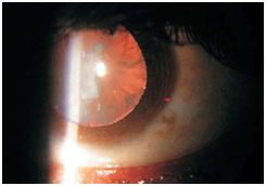 Phaco-emulsification with foldable hydrophobic posterior chamber IOL in the capsular bag was done under peribulbar anesthesia in left eye. Postoperatively the recovery was uneventful. He regained uncorrected visual acuity of 6/9 in left eye.