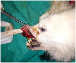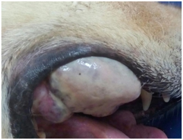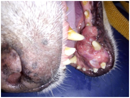 Epulis are tumourous growths originating from the animal’s gums and alveoli. They appear early on as small masses sprouting from the gum; hangs from a stalk like structure and during expansion they generally displace tooth structures. They are more commonly met with in dogs. These are usually benign tumours and they do not spread to other organs of the body; however, have tendency to recur. The tumour is firm and hard in consistency; may be grey, pink or bright red and is located at the gingival margin, but do not arise from the teeth. The animal may frequently rub the mouth with paws. Impaired appetite, difficulty in mastication, bad odor from the mouth is the characteristic symptoms.1 There are three different types of epulis: fibromatous, ossifying and acanthomatous observed in canines.2