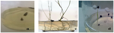 Figure 5 Seed germination in vitro in semi-solid MS medium after one week of incubation. (a) Dahlia, (c) Asparagus and (d) Onion.