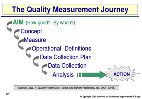 The rationale of the quality measurement journey framework (QMJ) as shown in Figure 1 has been identified for this paper in order to identify every step in the measurement plan of the quality improvement concept. The reason for choosing the quality measurement framework is the associated development steps of following each other to accomplish improvement in measurement plan while if we apply just a measurement framework without the quality concept, it would only fit the part of measure the knowledge problem. The measurement study of nurses’ challenges in using pain assessment in the ICU will explore the use of pain assessment tools and why nurses judge pain themselves rather than implementing the tool. Thus, the QMJ will be used to explore and measure the issue. According to Wells et al.13, pain assessment improves the quality of care provided in ICUs. The significant part of the improvement project is a measurement plan, to address and develop a suitable way of assessing patient pain in the ICU. Planning the measurement in a frame of improvement allows for the evaluation of multiple cases and changes in the process.14 The steps of the measurement plan follow the framework including the definition of eight milestones: the aim, concept, measure, operational definitions, data collection plan, data collection, analysis, and action.9
