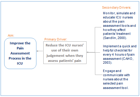 The measurement plan for nurses’ challenges in applying the pain assessment tool in the ICU with patients who are unable to self-report has been established by the QMJ framework. The measurement plan of the improvement project is based on the aim to improve the pain assessment process in the ICU, which relates to the primary driver of reducing ICU nurses’ use of their own judgement while they assess patients’ pain. There are also three secondary drivers. This addresses the other elements in the plan to improve patients’ and hospitals’ outcomes. It is clear that the measurement plan is achievable, and the project aim is to persuade nurses to follow the international guide for implementing the pain assessment tool. The recommendation is to employ the pain assessment tool to help nurses assess non-verbal patients' pain, not to force nurses to use something they do not believe in. The tool should help the ICU nurses to assess the patients’ pain clearly and it should not increase their workload.26