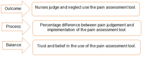 The process measure is about how and how often the nurses judge patients’ pain rather than using the tool, in the case of following the guideline of assessing patients’ pain every 4 hours for the ratio 6:6 ICU nurses and non-verbal patients. Gagliese et al.20 found that ICU nurses judge cancer patients’ pain routinely, using a strategic methodology such as observations of spontaneous behaviour and patients’ self-reporting. Gélinas et al.21 compared pre- and post-implementation pain assessment tools, they showed an increase in ICU nurses’ pain reports from 27% to 60% in a year, while ventilator patients reported higher sedation doses in pre-implementation. It is clear that the nurse’s judgement on pain assessment not a scale to measure the pain like the tool effectiveness. The balance measure is nurses’ trust and their belief in the pain assessment tool. ICU nurses’ behaviour and judgement come from their trust in the reliability of the pain assessment tool, which is the challenging issue of behavioural change to critically manage implementing the tools.22 However, according to Brewer et al.23, nurses’ judgement and lack of trust in the tool lead them to employ complementary and alternative medicine for pain relief. Reducing ICU nurses’ own judgement to improve the use of the pain assessment tool requires that the nurses have trust in the tool’s reliability and validity Figure 3.