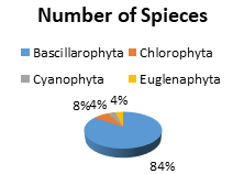 A total number of 52 taxa belonging to 4 divisions Table 1 namely, Bacillariophyta (Diatoms), Chlorophyta (green algae), Cyanophta (Blue-green algae / Cyanobacteria) and Eulenophyta (Euglenoid) were identified from the phytoplankton samples examined. The phytoplankton taxa were mainly of the division Bacillariophyta, which accounted for 84%, 4% and 4% taxa respectively.