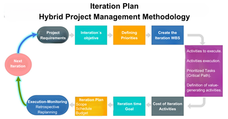 The Hybrid Project Management Methodology for construction projects implements a model for developing the Scope, Schedule, and Budget Plan through iterations. |