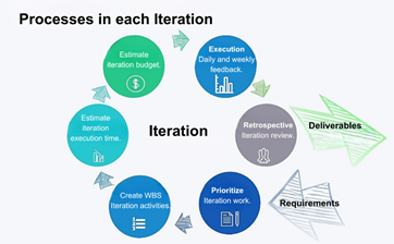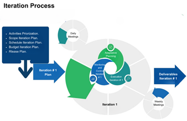 In Figure 6, a model of the processes involved in an iteration is presented to facilitate the release of priority project deliverables on time. And in Figure 7, the activities to be considered in each iteration are shown.