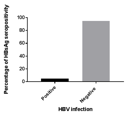 Blood samples were collected from each participant, left at room temperature for 15minutes then centrifuged at 3000rpm for 10minutes to obtain serum.7 All serum samples were tested serologically for HBsAg using immunochromatographic tests (Humasis kits) according to manufactures guidelines.