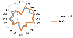 Figure 1 ThreeRelationship between sustainability indicators of organic and conventional production systems.