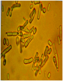 In the world practice, preparations of wood-destroying fungi to protect coniferous plantations from the root sponge are mainly obtained by surface cultivation of fungi on solid media, which ensure the formation of a large number of viable spores, the oidies shown in Figure 1, in the surface layer of the mycelium. 1. Oids retain their activity under certain conditions for 5-6 months. The production of such preparations is hampered by a complex composition of nutrient media containing sawdust, potato flour, peptone, molasses and other components, as well as labor-intensive production and low productivity of plant plants. A more productive and much less laborious is the deep method of cultivation of fungi. However, in this case, it is necessary to select the composition of the nutrient medium, which ensures a sufficiently high level of oidium formation. Experiments on deep cultivation of Phlebiopsis gigantea fungus in flasks with a liquid nutrient medium on the basis of post-alcohol bard showed that bard is a full nutrient medium providing a high level of accumulation of the fungal biomass of 6.0 9.8g/l medium with a duration of 12days. From Table 1 shows that sawdust is the most preferred stimulator of oid growth.