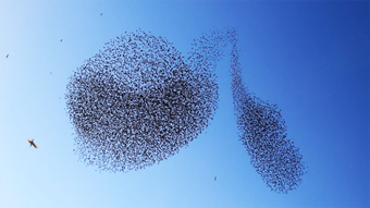 Figure 2 Dissipative system - by the example of a flock of starlings (the phenomenon of murmuration).9 Similar dissipative structures (systems) are formed within a living organism in the form of an association of molecules and cells of the same type.