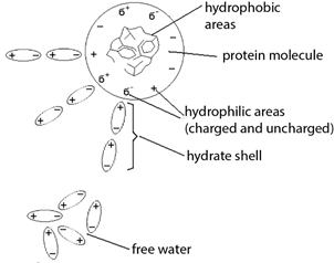Figure 8 Free water unbound to biopolymer and bound water as hydrate shell of biopolymer.24