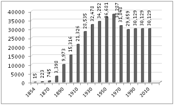 Another railroad was implanted from Paranaguá to Curitiba (state of Paraná), which was a landmark of excellence of Brazilian railway engineering at that time. In 1883 was opened to regular traffic to the stretch Morretes to Paranaguá (state of Paraná). In 1990 they already extinct, became a Historic Patrimony.3 In 1884, the country had 6,116km, 1,650km in addition to construction. In 1888 there were 9,200 km in operation and other and 9,000km under construction studies.3 The same holds true in 1910 with great evolution of the southeast, a small increase in the South, a small extension in the northern region, in the states of Amazonas and Pará.4 Figure 3(B) represents the increase in railways in 40years in the period 1870-1910, showing that its concentration continues in the southeastern region of the country, followed by the south and north.