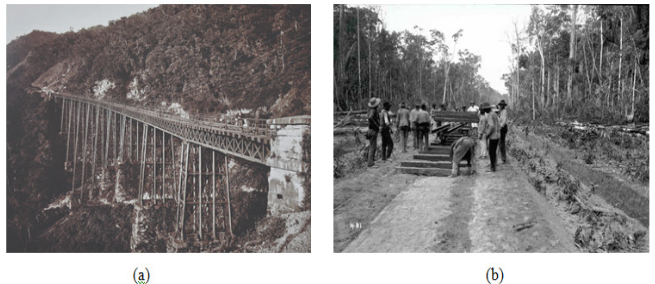 In 1903, the “Treaty of Petrópolis” was signed between Brazil and Bolivia, for the construction of “Madeira – Mamore” to compensate for transfer to Bolivia, the current state of Acre area. It was built by American engineers.3,6 Figure 2 presents a scene of The São Paulo Railway (a) and the “Madeira-Mamore” construction (b).