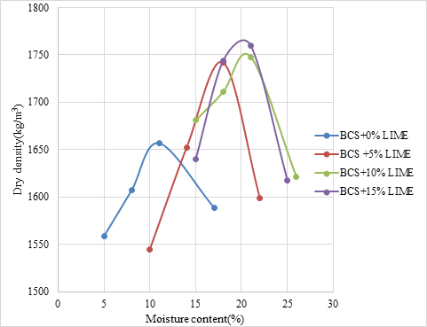 Table 1 Showing effects of Lime increment to the MDD and OMC of the soil
