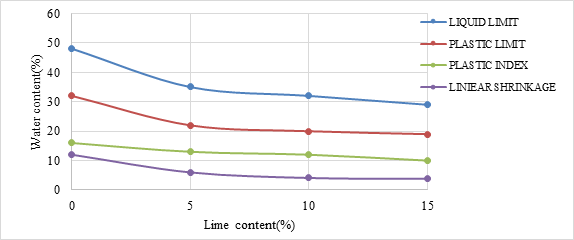 Table 2 Showing the effect of Lime increment to LL, PL and PI of soil