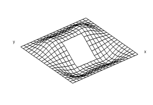 The mode shapes corresponding to the fundamental modes of vibration are plotted in Figure 2,3 for cross ply and angle ply shells respectively. The normalized displacements are drawn with the shell mid-surface as the reference for all the support condition and for all the lamination used here. For corner point supported shells the fundamental mode shapes are complicated. With the introduction of cutout mode shapes remain almost similar. When the size of the cutout is increased from 0.2 to 0.4 the fundamental modes of vibration do not change to an appreciable amount.