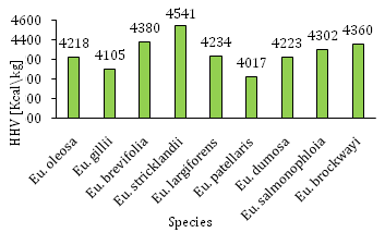 Keywords: forest species, temperature, eucalyptus, high calorific capacity