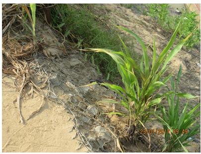 The Sagbagreia scheme was constructed of box gabions (Maccaferri Gabions). The gabion protection was laid on non-woven geotexile filter fabrics. The main problems with this scheme are: