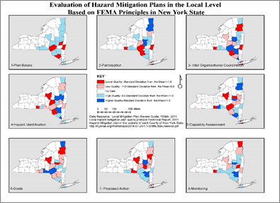 A number of academic studies have shown that HMPs are often inadequate and poorly implemented. Rovins, who was a Senior Mitigation Planner with FEMA, questioned whether the HMPs actually reduce disaster damage and recovery expenses.3 At a more analytic level, questions about the relative quality of plans have been asked by a number of researchers. Kaiser and Goebel et al.4 studied the quality of state-level plans required under Section 409 of the Robert T. Stafford Disaster Relief and Emergency Assistance Act, and found that the plans were inadequate. According to their study, the plans lacked essential elements such as goals, objectives, assessment of mitigation capabilities, plan monitoring, evaluation and updating procedures. Additionally, states did not follow through on adoption, funding, and follow-up action. They concluded that the plans became a “hoop to jump through,” rather than contributing to significant mitigation. This study was a work unit in the New York State Resiliency Institute for Storms and Emergencies (NYS RISE).