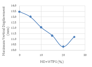By numerical modelling of the embankments made up of all these mixes using finite element based software PLAXIS, it is also found that at 20% of Marble Dust and WTP Sludge, the maximum vertical and horizontal displacement are the minimum. Based on these findings, an Optimal Mix for the road embankments has been achieved by mixing 20% Marble Dust and WTP sludge (in equal quantities) of the soil. Therefore, the present study gives three fold problem solution: