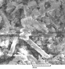 For all samples, the cementitious material Type I ordinary Portland cement (OPC) conforming to the requirements of ASTM C150 was used.21 The physical characteristics and chemical compositions of the Portland cement and TiO2 nanoparticles are summarized in Table 1 & 2, respectively. Moreover, the coarse aggregate size number was 57 (25.0 to 4.75 mm) according to ASTM C33.22 Also, fine aggregate met the specifications mentioned in ASTM C33 standard. In all mixtures, to increase the workability of the mixtures, super plasticizer was added, which was a polycarboxylate-based high range water reducer (HRWR) agent with the density of 1.03-1.05 g/cm3 (at 20°C). The highly graphitic carbon nanofibers with the following characteristics were used: 45 m2/g surface area with 1.6 g/cm3 density. The CNFs were manufactured using the chemical decomposition of principally natural gas over an iron-sulfide catalyst in a reactor maintained near 1100°C. This process happens with quick heating at around 600°C and does not change the nanofiber’s structure. The fibers with a diameter of 100 nm showed a tensile strength and modulus of 6 and 600 Gpa, respectively. The length ranges of 30–100 are used. These nanofiber has been subjected to a typical debulking process. CNF was prepared in amounts of 0.1-0.5 wt. % of cement. CNFs have a complex microstructure. The exterior surface of this nano-fiber characteristically involves of conically shaped graphite planes canted with respect to the longitudinal fiber axis. It might help the fiber to not interfacial slip in the matrix. The Scanning Electron Microscopy (SEM) picture of the fibers can be seen in Figure 1. The outer walls are the thin lines on the surface of the nanofiber.