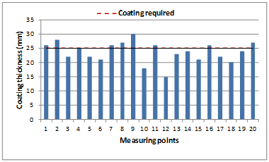 The tests were carried out on reinforced concrete elements such as columns, beams and stringers. Figure 6 gives the values of the coating thickness corresponding to the analysis points. According to the results, we note that the average value of the coating thickness measured on the different surfaces is equal to 23 mm which is in accordance with the requirements of standard BS EN 1992–1–1.19