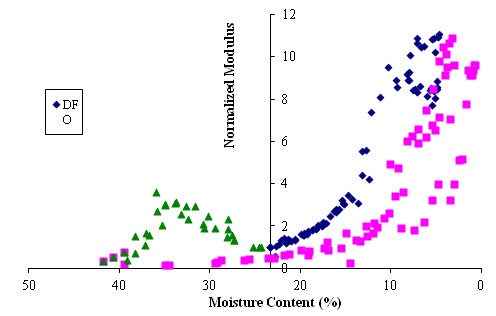 ) to NMC for one specimen when drying from optimal (DFO). The mechanical parameters of interest (