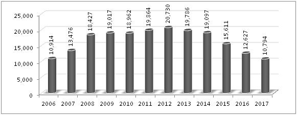 Figure 1 Accidents in Civil Construction during the period 2006–2017.1