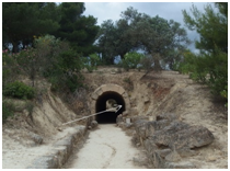 Figure 1 Nemea, Peloponnese: (A) stadium entry. (B) antique graffiti on a tunnel slab underlined by a white line.