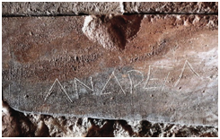 Graffiti is, by definition, a form of writing, scribbling, scratching or distributing paint over a hard surface, on a public wall, illegally and anonymously. On the other hand, an entirely legal and considered a form of art is s graffito, architectural decoration of walls. The prototype here can be Paleolithic images, 40 to 10 thousand years B.C. found in the caves of Cro-Magnon, Lascaux, and Altamira. Today, it is difficult to decide if those works of art were in any way legal or not. Certainly, the painting technique was similar to today’s graffiti. During the Hellenistic Period in Greece, inscriptions were carved in the stone of walls. A relevant example is presented in Figure 1. It is an inscription indicating a person whose name signified somebody powerful and extraordinary.