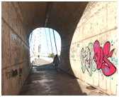 Figure 9 Pedestrian subway in a railway embankment, Mérida, Spain: A) factual status B) the embankment with the graffiti removed.