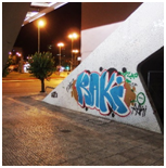 The bridge, unofficially called Puente Blanco (Figure 5), was constructed in 1991. The inscriptions sprayed on the concrete arch portals are, from the aesthetical point of view, rather common and uninteresting. The same can be said about the graffiti on the abutments, although in this case it is a full blown graffiti.