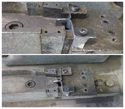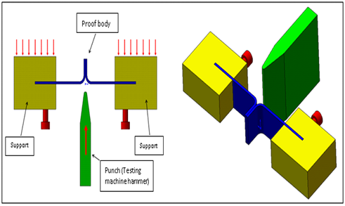 After the test specimens were manufactured, the experimental tests were performed on an AMETEK type impact test machine (Figure 3), with a maximum capacity of 330 Joules. The hammer used is type 1, has 30 kg and the cleaver ASTM. The machine shown in Figure 3 provided the energy absorbed in kg, for a better interpretation of the results the unit transformation was made to Joule. The assay temperature was at room temperature. The fixation of the specimen on the test machine can be seen in Figure 4. The fastening was carried out on a support at the base of the machine by means of screws (Figure 4), allowing the impact hammer wedge to reach precisely the welded joint as shown in Figure 5. The impact tests were first performed on the specimens manufactured trough MIG weld of 6 mm and 8 mm hole diameters. Subsequently, the impact tests in the welded specimens by means RSW process at 6 kA and 7 kA were carried out. Finally, the energy absorbed from the specimens welded by the two types of weld was compared by means student t–test.