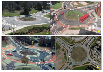 Also considering the pedestrians, the mentioned trend is confirmed. At roundabouts, in fact, pedestrians cross a shorter distance of only one direction of traffic at a time, since the entering and exiting flows are separated. In this way, the pedestrians have a reduced number of points to be checked before crossing and, in addition, often their safety is further amplified by the presence of splitter and divisional islands.5 Concerning the relationship between cyclists and roundabout, worldwide there are different opinions.6,7 In general, compact single lane roundabouts are safe for cyclists, because bicycles and vehicles speed are similar and all users follow similar trajectories between them. On the opposite, multi-lane roundabouts have a large ring diameter, higher speed differences and a remarkable variance in preferential trajectories.