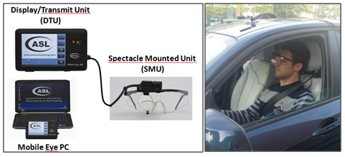 The eye tracking equipment along with a computer and the VBOX PRO equipment were kept on the back seat and were monitored by one of the experimenters, who was instructed not to talk to the driver except for giving instructions as to direction and if there was a request for assistance.