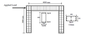 The RC frame is shown in figure below; the infill panel is composed of thick red bricks 120mm. the concrete used is B25 (25MPa), and the mortar compressive stress is 10 MPa. A horizontal force at the top of the left column loads the frame. Based on the method described in paragraph 3.4 of Eurocode 6 P1-1, results of calculation of the masonry are:
