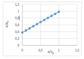 While the relationship between the normalized lateral stiffness and the size of the opening can be approximated by a polynomial of order 2 curve: