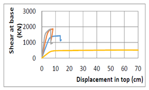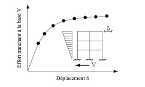 Indeed, it gives an average reduction of θ index (reversal index in the RPS 2000 V2011) 68% for solid panels and 64% for panels with openings. As previously reported, diagrams drawn above were drawn in the linear elastic domain for several reasons, first is the not mastery of the dynamic masonry behavior without experimentation. Thus this study was limited in that domain. But during a violent earthquake materials do not remain in their elastic state, therefore, the linear approach can provide only limited understanding of this behavior and the consideration nonlinearities is essential for a proper assessment of the behavior seismic structures. This leads to do a non-linear structure analysis with the Pushover method (progressive push).