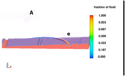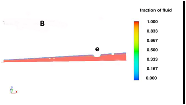 Figure 11 Dry season Case 2 fluid fraction results for the east arm of the drainage canal indicating decreased seepage water into the drainage channel and extensive surface drying.