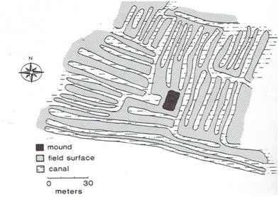 The conclusion that applies for the Tarraco raised field geometry also applies in the Pampa Koani region as Figure 17 indicates and makes similar claims of use the Terraco technology to maximize agricultural land area. Although regional differences may exist in raised field designs, the Tarraco system design may reflect different groundwater water availability and ambient air temperatures and crop types than those for Tiwanaku raised field designs that require more efficient use of water resources.